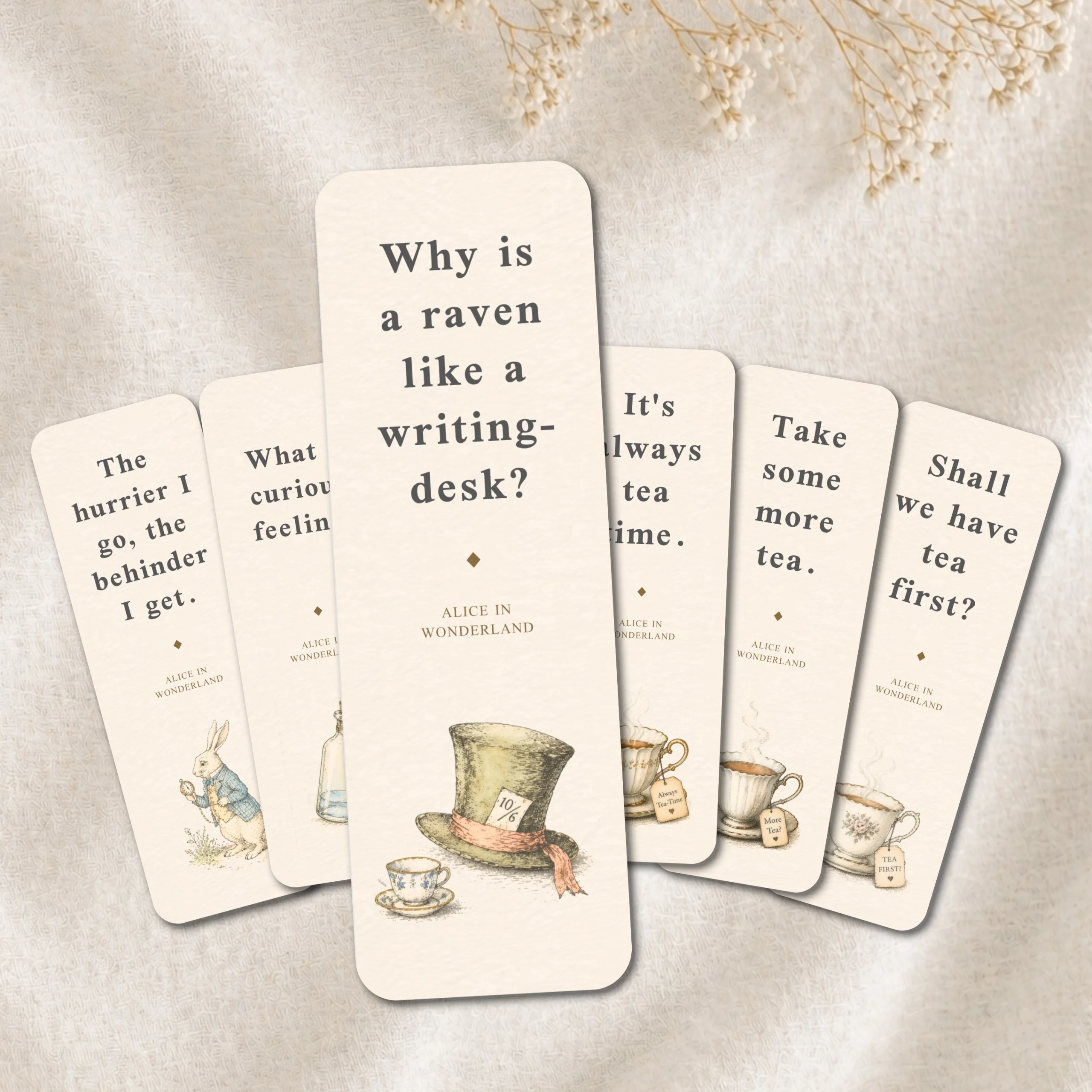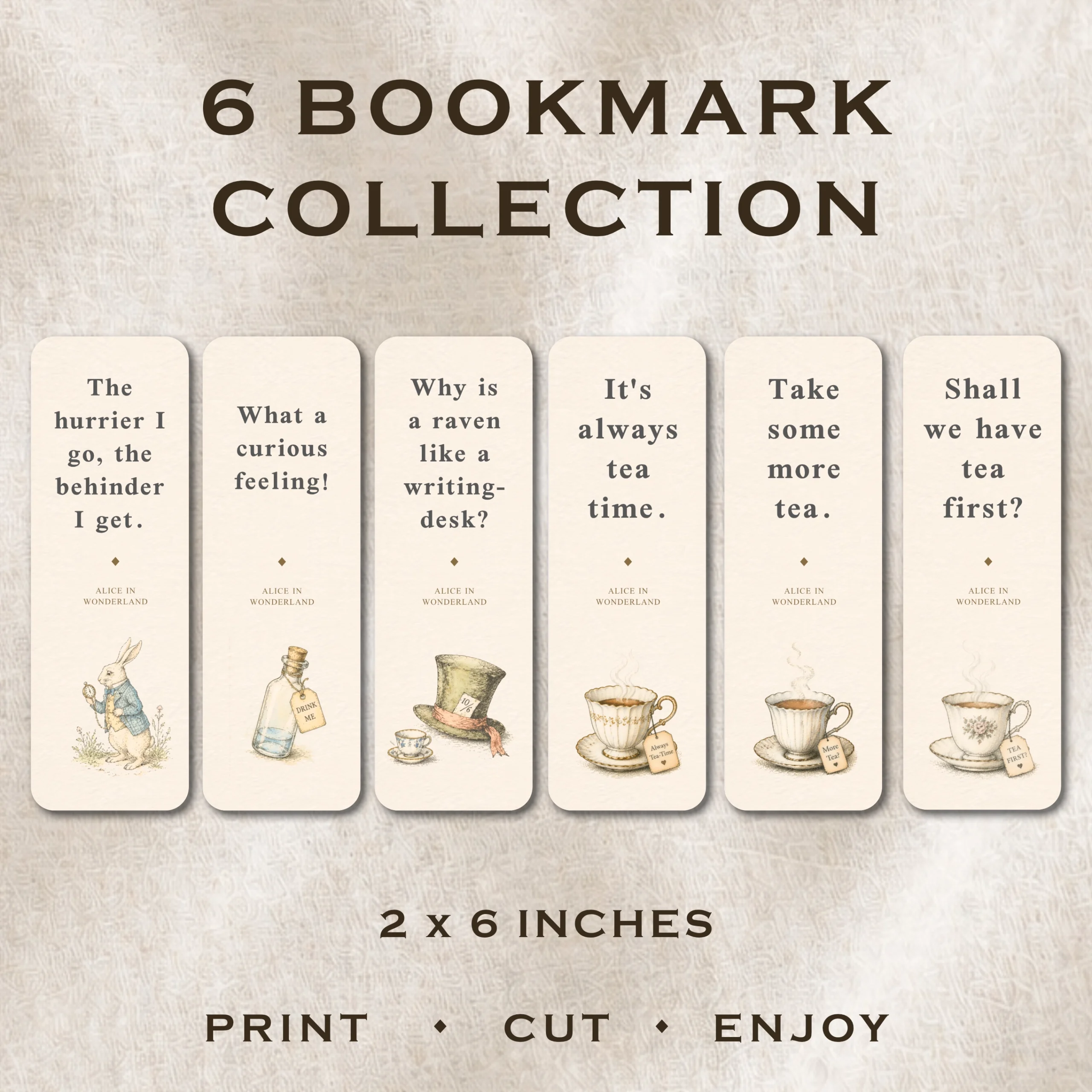 Bookmarks with book quotes from beloved classic Alice’s Adventures in Wonderland by Lewis Carroll.